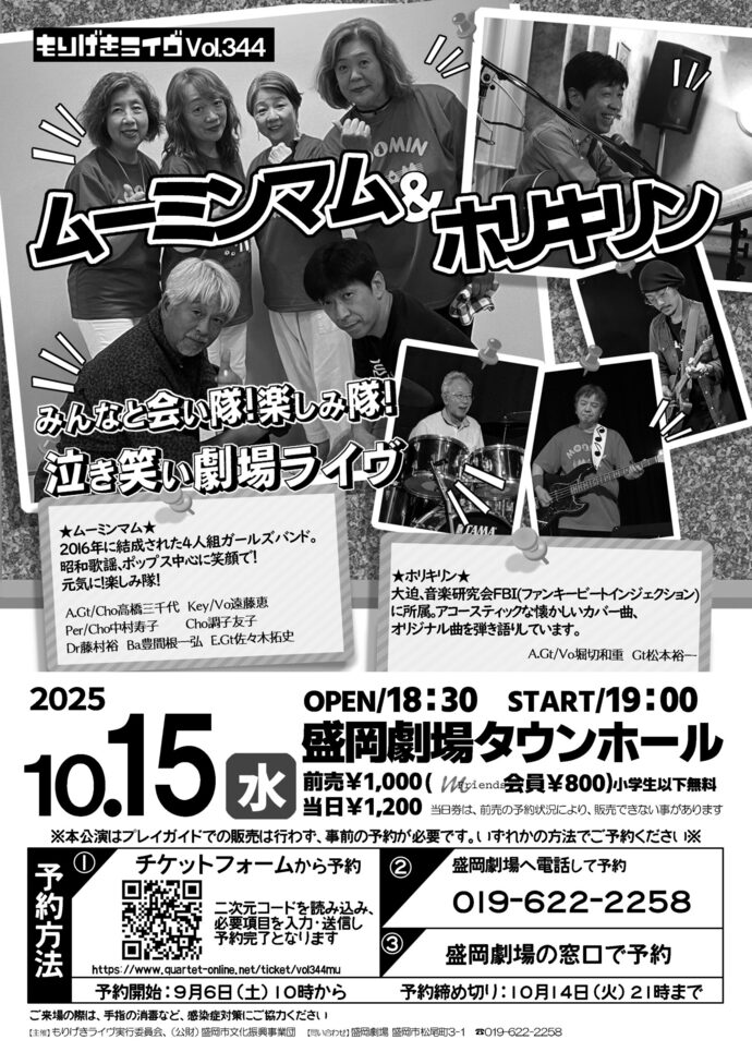 市内外で活動するバンド「ムーミンマム」と「ホリキリン」が演奏します。