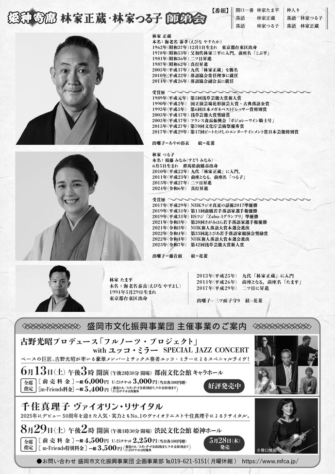 姫神寄席「林家正蔵・林家つる子 師弟会」
